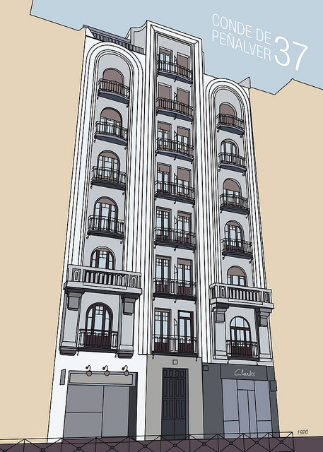Nuevos ejemplos para la serie de ilustraciones arquitectónicas de Madrid. Mediante el dibujo vectorial consigo una retrato directo en un estilo elegante y limpio. Sin obstáculos a la vista que afeen su aspecto (mobiliario urbano no deseado, circulación, obras, suciedad, rótulos ajenos, kioskos, etc…). Ideal para presentar fachadas y edificios representativos como hoteles, colegios, centros comerciales y de negocios, etc... pero también locales comerciales, oficinas e interiores
